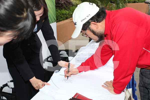俱樂部發起理事、隊員牛根生致開幕詞,祝福大家打出好成績并希望參賽隊員能在今年獲得一桿進洞獎品--寶馬轎車。聯隊新隊員黃輝、林紋如、李志海、張岷作為開球嘉賓依次成功擊出彩球,贏得滿堂彩。全體嘉賓合影留念后,比賽正式開始。