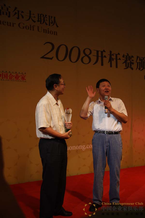 賽后的頒獎午宴上,高朋滿座。賽事主辦方將“領袖獎”頒給了柳傳志先生,以感謝其對俱樂部活動的大力支持。頒獎人牛根生先生感慨道:“在中國可以給柳傳志總裁頒獎的人好像不太多,我今天非常榮幸,比領獎人還要榮幸。我獲得2003年度經濟人物,發獎人正是柳總。”