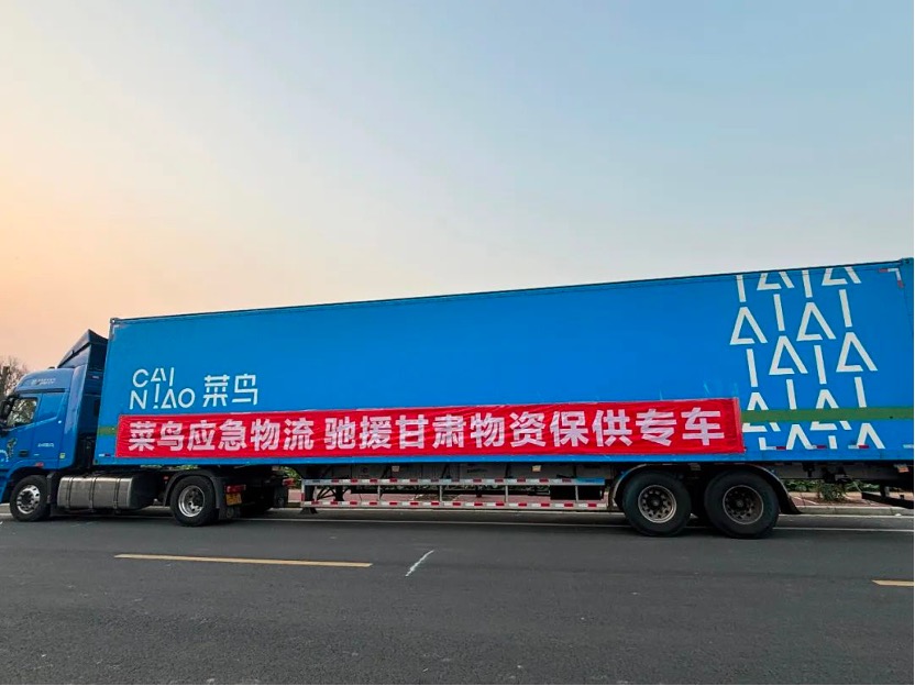 地震發(fā)生后,菜鳥啟動應急機制,聯(lián)合中國紅十字基金會等機構,第一時間開展應急物資運輸?shù)裙ぷ鳌T谥袊t十字基金會、浙江省青少年發(fā)展基金會的調(diào)度下,菜鳥派出的應急物流車輛已從成都、桐鄉(xiāng)等地出發(fā),并聯(lián)動航空公司,通過支線攬收、航空運輸、陸運接駁等方式配送運輸,將賑濟家庭箱、羽絨服等物資送達甘肅地震災區(qū)。