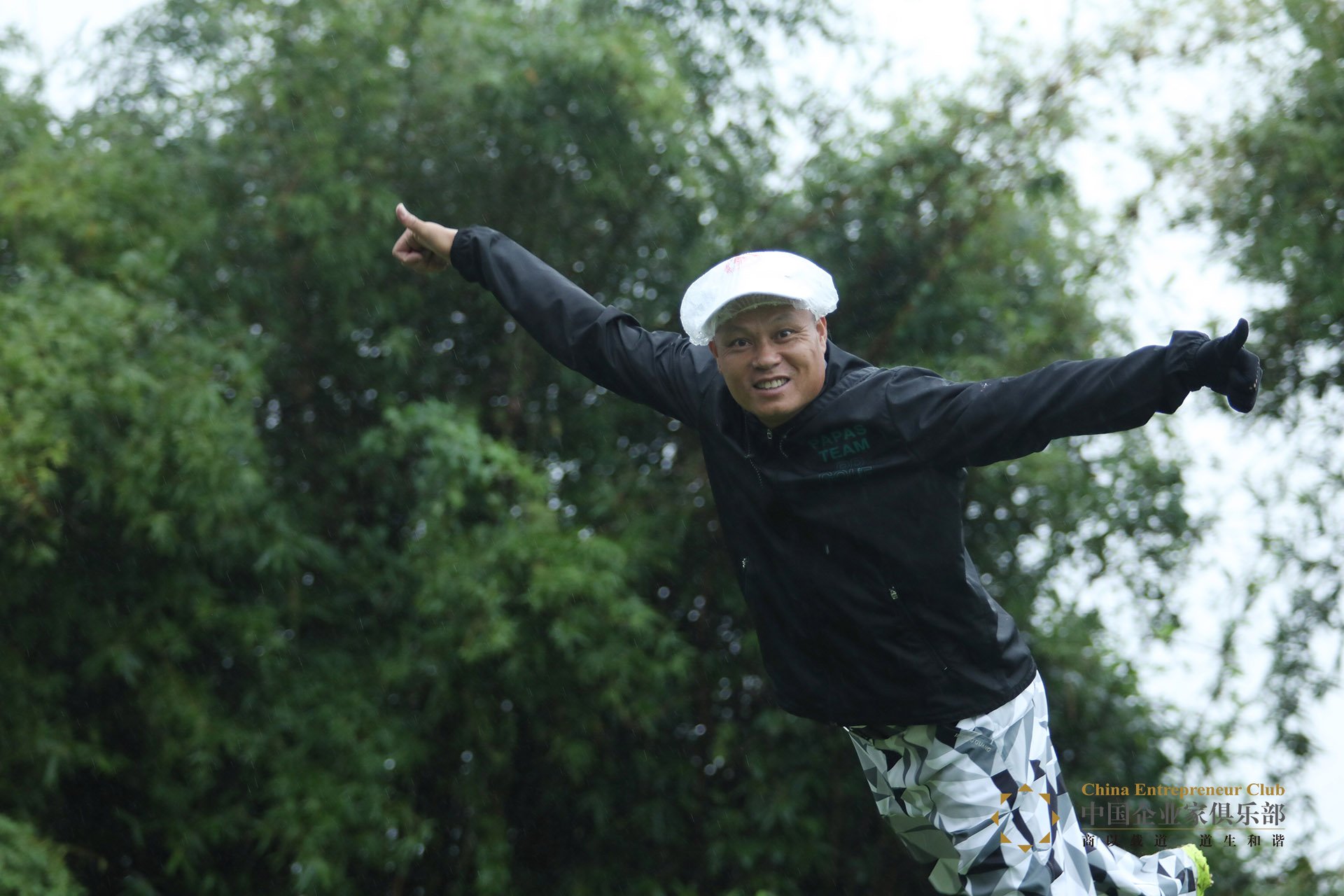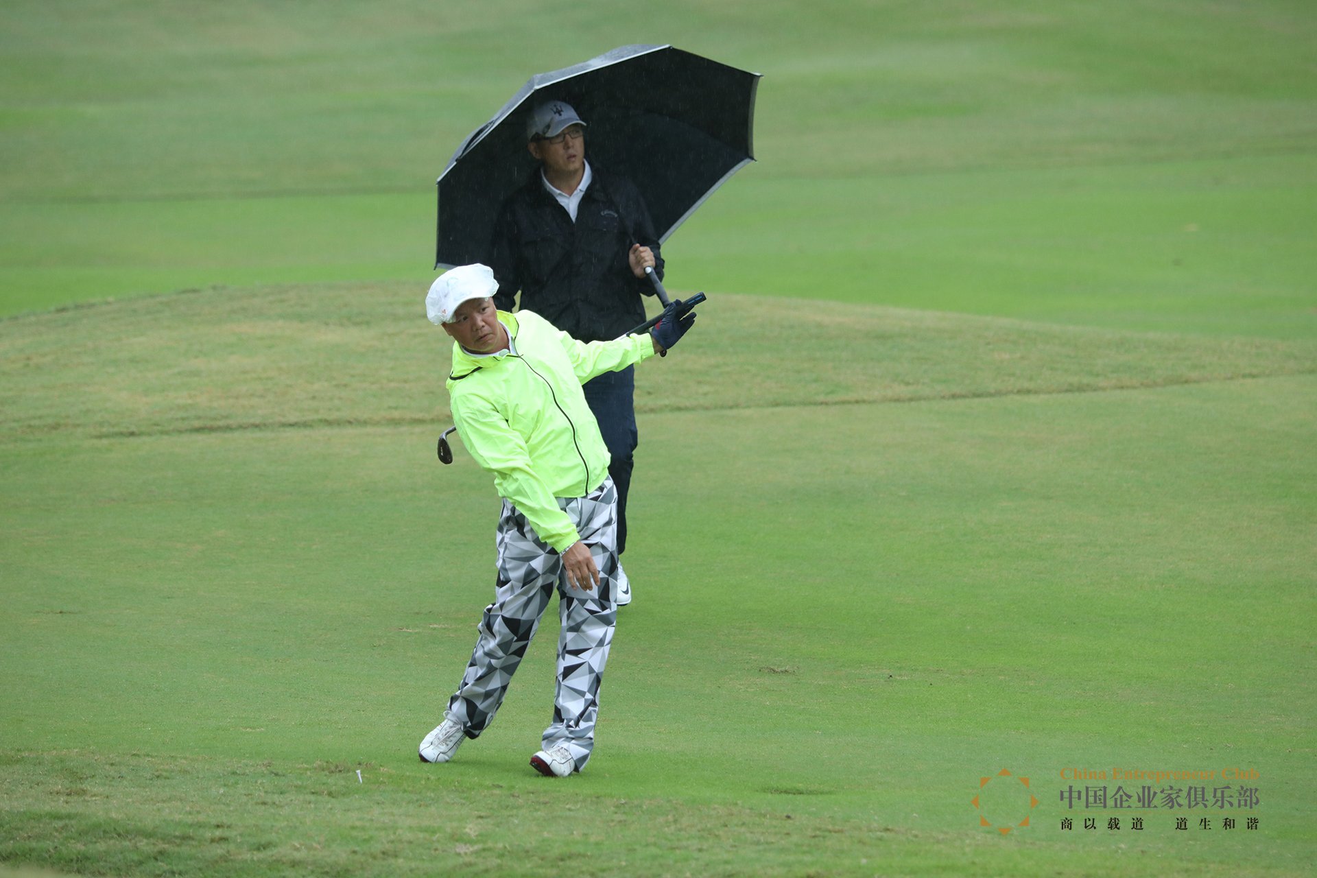 ——話說,我們中企球隊上個月在海拔3000米的高原打球,這次在暴雨中打……看來做企業家不僅要腦路清奇,還要身板子硬。