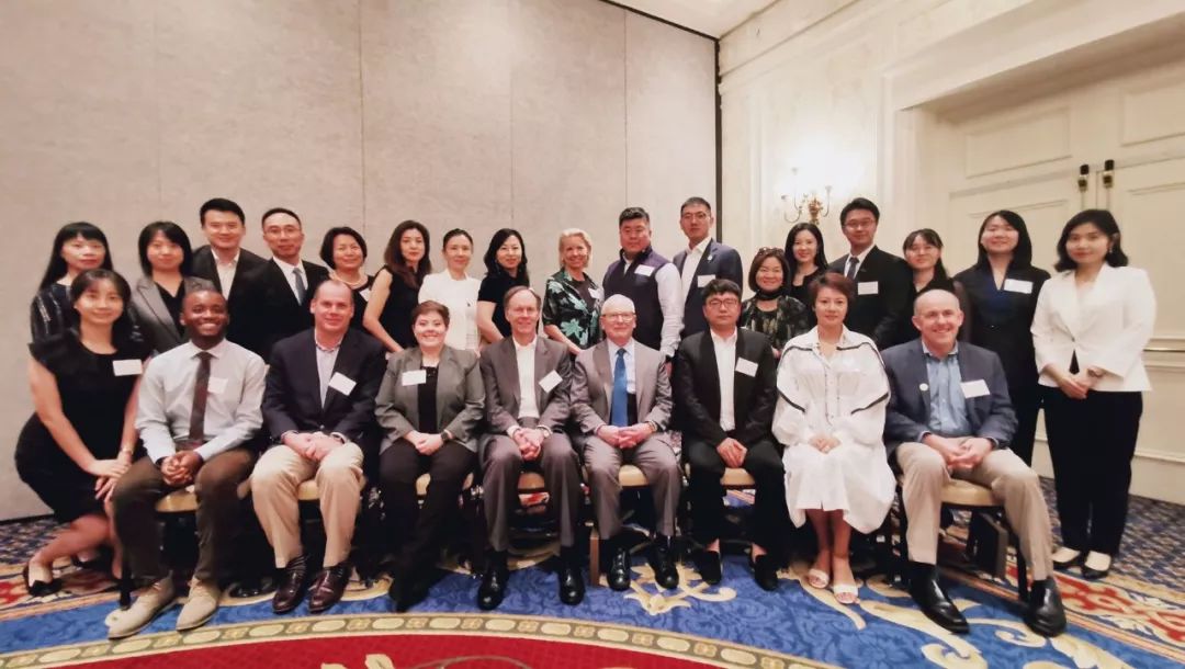 ▲中國綠公司聯盟·杜克菁華之旅的企業家學員與杜克大學校長文森特·普萊斯、發展聯席副校長柯文迪