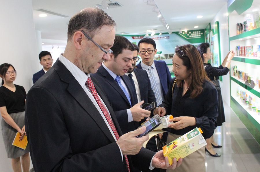 ▲巴西大使保羅·瓦萊對匯源產品包裝上的巴西元素很感興趣