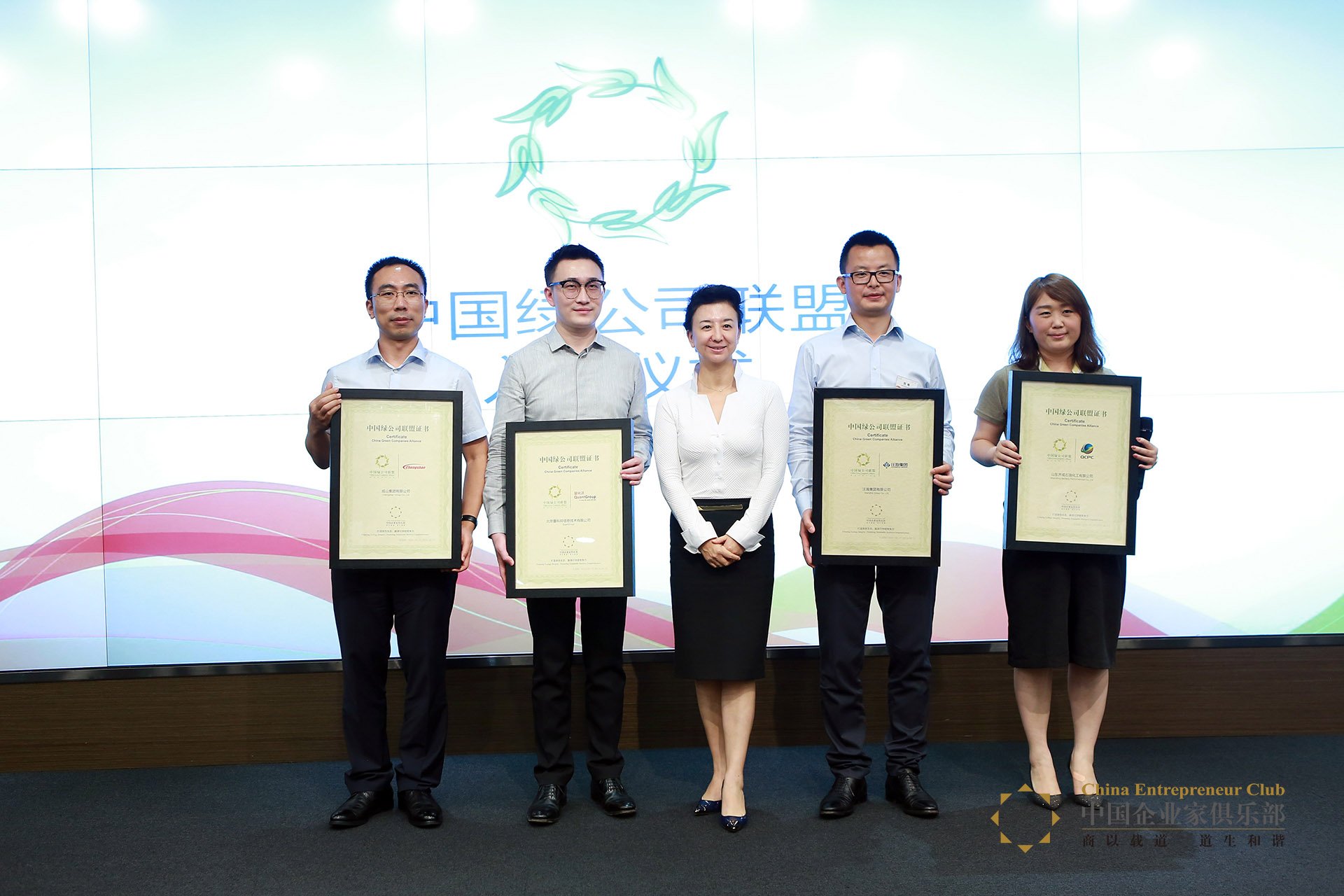 在今天的圓桌會上,中國企業家俱樂部秘書長程虹為新加入中國綠公司聯盟的北京量科邦信息技術有限公司、汪海集團、山東齊成石油化工有限公司、成山集團進行了授牌。